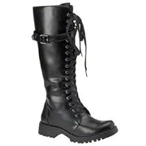 Show the fashion police how it's done in these commandingly hip Volatile Combat boots. Faux leather upper in a casual combat boot style with a round toe. A wraparound faux leather buckle strap adds edgy decorative detail. Grommeted front lacing and a full side zipper ease fit at the 14 inch shaft. 12 inch circumference collar textile lining and cushioning insole. Flexible midsole and durable rubber traction outsole. 1 1/4 inch square heel. Style Name: Combat[]